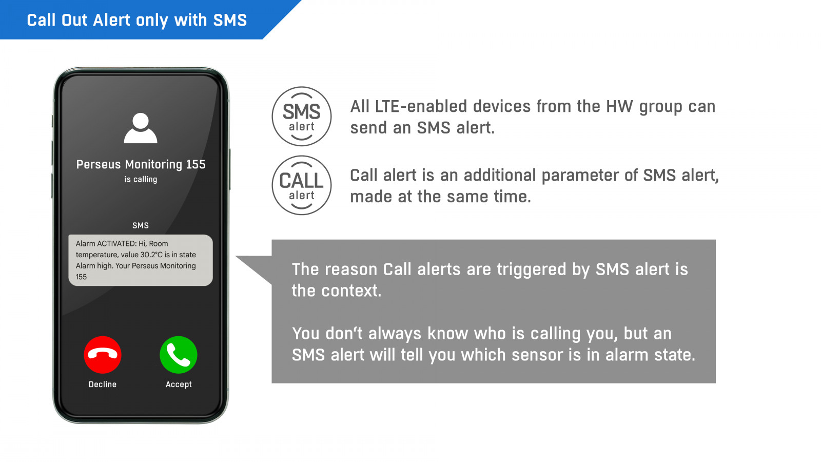 - Alarm functions: E-mail, SNMP trap, SMS / calls directly via LTE